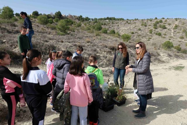 Más de ochenta alumnos y alumnas del Colegio Público Virgen de Candelaria han participado hoy en una campaña de reforestación en el paraje de Las Tosquillas de Barranda. La actividad ha estado promovida por el propio centro educativo, en colaboración con la Concejalía de Medio Ambiente del Ayuntamiento de Caravaca y la empresa Talleres Santa Cruz. Los escolares han plantado 130 especies autóctonas, como el pino carrasco, romero de monte, lentisco, encinas o aladierno.