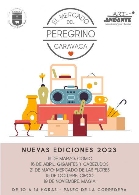 28/01/2023. El Ayuntamiento de Caravaca de la Cruz ha programado una nueva temporada del Mercado Peregrino, con ediciones novedosas que se celebrarán entre meses entre marzo y noviembre. La concejal de Comercio y Artesanía, Ana Belén Martínez, y la presidenta de la Asociación de Artesanos y Creadores 'Art-Andante', Teresa Rodenas, han presentado las temáticas y actividades previstas para esta cita con la artesanía, la cultura y la gastronomía, que tiene lugar cada tercer domingo de mes en el paseo de La Corredera.