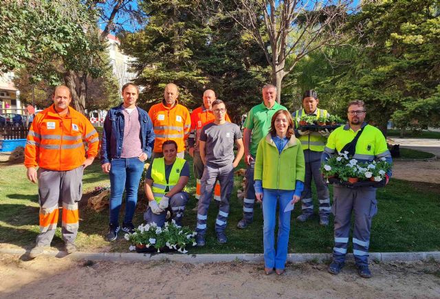 La edil Mónica Sánchez ha informado que "las labores de plantación de flores de temporada forman parte de los trabajos de mejora que de manera progresiva se están realizando en los parques y zonas verdes públicas tanto del casco urbano como de las pedanías, labores que ahora hemos reforzado gracias a la contratación de cuatro nuevos jardineros a través del programa de empleo juvenil 'Primera experiencia', que financia el Servicio de Empleo y Formación de la Región de Murcia y el propio Ayuntamiento".