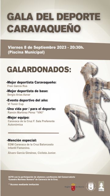 06/09/2023. Con los premios de la Gala del Deporte Caravaqueño, que fue recuperada el pasado año tras más de una década sin celebrarse, el Ayuntamiento de Caravaca de la Cruz reconoce este viernes, 8 de septiembre, la trayectoria y aportación a la sociedad local de deportistas individuales, equipos y organizadores de competiciones con sede en el municipio.