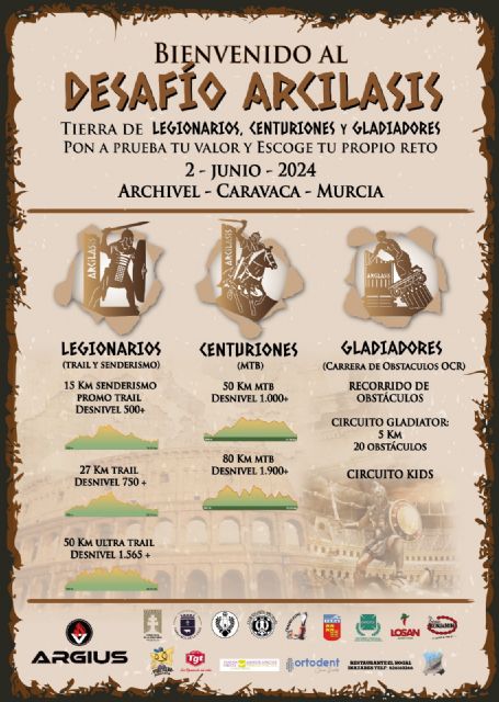 Además de las modalidades a pie y en bicicleta, el Desafío Arcilasis recoge una carrera de obstáculos como principal novedad. Será un circuito de cinco kilómetros y 20 obstáculos que convertirá a en gladiadores a quienes lo superen. Para integrar a los niños y niñas en este multievento deportivo también habrá un 'Circuito Kids'.