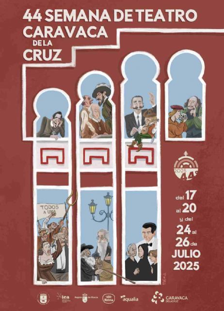 En el cartel de esta cuadragésimo cuarta edición, diseñado por el dibujante José Manuel Puebla, rostros de grandes figuras literarias del teatro universal se asoman por los característicos arcos de herradura de la Plaza de Toros caravaqueña