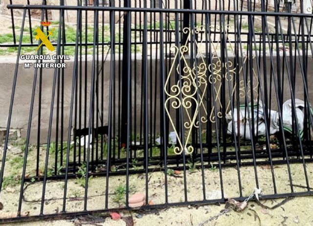 La Guardia Civil también localizó la verja de hierro robada de la vivienda piloto de Barranda. La verja se encontraba en un lugar visible del domicilio de uno de los sospechosos.